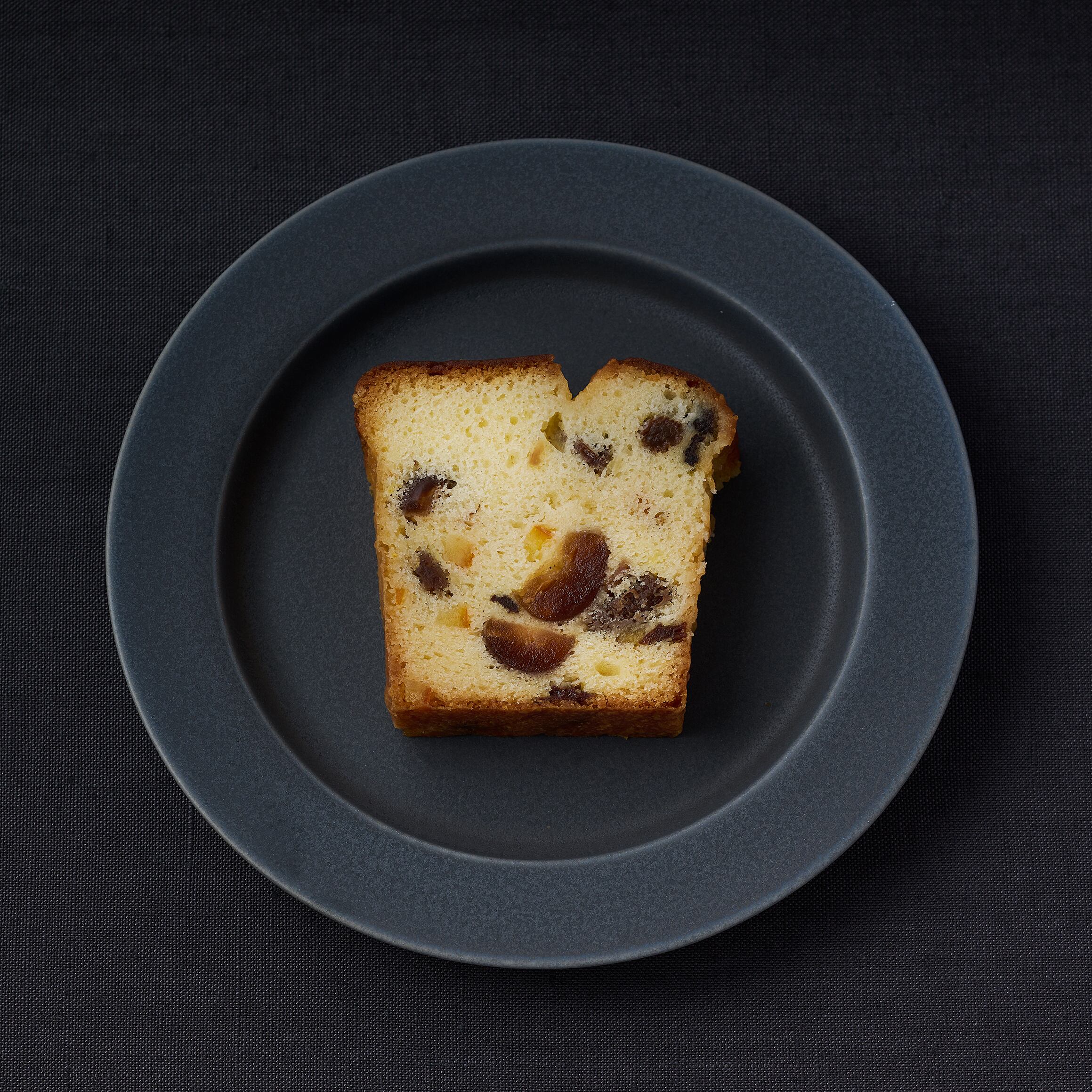 じっくり洋酒に漬け込み熟成されたフルーツを生地の中へたっぷり混ぜ込み、焼き上がりにキルシュのシロップをかけ仕上げました。しっとりと香り華やかなバランスのとれたSAKI一押しのフルーツケーキになります。
